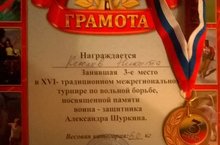 21.02.2016г. ученик нашей школы Кислов Никита занял 3 место в XVI-традиционном межрегиональном турнире по вольной борьбе, посвященной памяти Александра Шуркина, проходившем в с.Новое Ильмово Дрожжановского муниципального района.