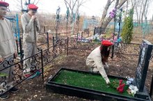 В рамках декады пожилых людей и года педагога и наставника юнармейцы школы вместе с руководителем отряда Волковым Е. П. провели уборку могилы учителя физики и труда Зотова Алексея Николаевича и старейшей учительницы начальных классов Зотовой Галины Васильевны.