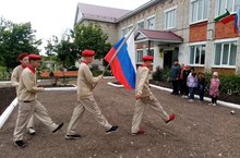 В праздничный день в школе прошла торжественная линейка «Мой гимн, мой флаг, моя Россия». Ребята исполнили гимн Российской Федерации под вынос российского флага юнармейцами.