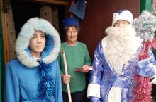 Сегодня поздравили труженников тыла супругов Володиных с Новым годом, а Таисию Григорьевну с 95 летием. Дед Мороз и Снегурочка пожелали здоровья и долголетия. Вручили фруктовый подарок.