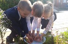 В ее рамках участникам акции предлагается набрать воду из чаши в ладони и полить из рук цветы - таким образом, символически поделиться водой с теми, кого уже нет. Ведь все три дня, находясь в заложниках, люди не могли выпить ни капли воды.