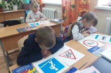 Сегодня провели познавательный час, на котором зактепили знания о дорожных знаках и их классификации, правила безопасного поведения на улицах и в транспорте, правила перехода перектестка, регулируемого светофором.