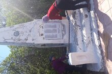 Побелили памятник, собрали прошлогоднюю листву, убрали мусор.