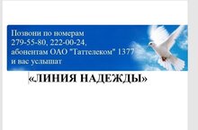 Телефон доверия службы "Линия надежды" 8(843) 222-00-24