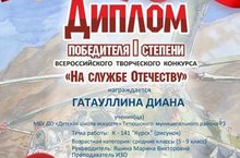 С 15 по 25 февраля 2021 года учащиеся Детской школы искусств художественного отделения под руководством преподавателя Яшиной М.В. приняли участие во Всероссийских творческих конкурсах: «На службе Отечеству», «Подвиги наших солдат», «Защитник Родины моей». Основные задачи конкурсов: сохранение преемственности поколений - сохранение памяти о важнейших событиях в истории нашей страны; пропаганда патриотических духовных ценностей, национальной гордости, уважения к чести и достоинству людей, выбравших своей профессией служение и защиту Отечества. Конкурсы проводились по соответствующим возрастным группам. В результате, по итогам конкурсов, в номинации "Рисунок" учащиеся Детской школы искусств Галиева Айгуль, Гатауллина Диана (3 класс ДШИ) и Старостина Элина (1 класс ДШИ) награждены Дипломом Победителя I степени. Учащиеся представили на конкурс творческие работы по теме: «От героев былых времен..», «Подводная лодка: Курск - 141» и «Горячий Кандагар». Преподаватель Яшина М.В. отмечена Благодарственным письмом оргкомитета за высокий профессионализм и творческий подход. Поздравляем!