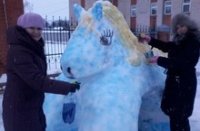 Коллектив Центра дополнительного образования детей творчески подошёл к конкурсу снежных фигур. Теперь здание ЦДОд украшает весёлый «Паровозик» и сказочный «Пони».