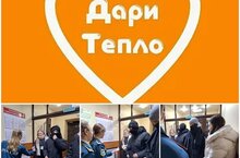 Объединение "Лидер" (рук. Лазарева Л. Н.) совместно с учащимися 6а класса (кл.рук. Хамидуллина Г. Р.)Приняли участие в социальной уличной акции "Дарю тепло".
