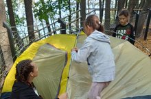 В рамках программы «Нескучные каникулы» Центра дополнительного образования в лесном массиве поляны «Сабантуй» был проведен мастер класс по спортивному туризму.