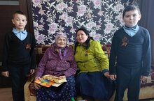 Учащиеся объединения «Моя малая Родина» (педагог – Л.Н. Долгова) поздравили с приближающимся Днём Победы труженицу тыла Ольгу Семёновну Соколову, 91-летнюю жительницу села Кильдюшево и пожелали ей доброго здоровья.