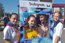 Активисты детского движения с тантамарезкой вида страницы Instagram предлагали прохожим сфотографироваться на телефон на память о юбилейной дате.