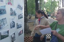 Активисты детского движения у оформленного банера предлагали прохожим поучаствовать в акции, где по предложенному описанию исторического здания и знаменитого уроженца города Тетюши, найти соответсвующую фотографию.