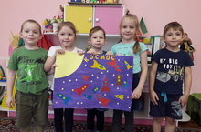 Педагог Насретдинова А.Р. рассказала детям об истории возникновения даты 12апреля, и что эта дата, значит для всех нас. Затем дети отгадали загадки о космосе.Полученные знания дошкольники отразили в продуктивной деятельности , выполнили аппликацию на тему «Космос».