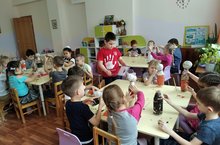 В объединении «Мир игрушек» (педагог Глотов Г.Г.) Центра дополнительного образования в течение месяца идет целенаправленная работа по изготовлению поделок из бросового материала. На этот раз малыши вместе с педагогом с удовольствием принялись изготавливать игрушки из пластиковых бутылок в технике папье-маше.