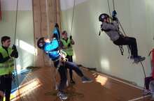 Участники соревновались на дистанции – "пешеходная личная", преодолевали этапы: навесная переправа, спуск по вертикальным перилам, подъем по стене с зацепами.