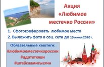 В рамках празднования Дня России с 10 по 15 июня прошла районная акция «Любимое местечко России». В социальных сетях жители нашего города и района поделились фотографиями, на которых запечатлены любимые места в разных города нашей Родины. Как показал мониторинг, большая часть представленных фотографий – места из разных уголков нашего любимого и родного города Тетюши.