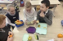 В рамках предметной недели в 3В классе прошла акция «Витаминная перемена». Дети с удовольствием ели полезные продукты: фрукты и овощи.