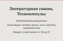Ученица школы Владимирова В. стала победителем Всероссийского конкурса "Литературная гавань" и приглашена на литературную смену «Техноимпульс», которая пройдет с 1 по 24 ноября в Евпатории - одном из красивейших курортов черноморского побережья (наставник: Л.Г.Шарафиева).