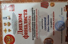 Сазонова Д., ученица 11б класса, признана лауреатом Всероссийского литературного конкурса "Герои Великой Победы - 2025" (наставник: Л.Г.Шарафиева).