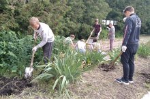 День начался с бодрящей зарядки. Была продолжена работа по облагораживанию пришкольной территории: поливка цветов, срезка засохших стеблей ирисов и т.д. Просмотрели фильма о ВОв «Солдатик». В свободное время играли в волейбол.
