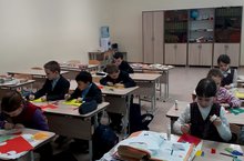 Туган тел дәресендә 2В сыйныфы укучылары әниләрен татар телендә котларга өйрәнделәр. Котлау сүзләрен, матур җыр сүзләрен дәрестә кабатладылар.
