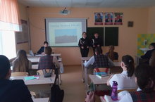 В 9Б классе прошел классный час, посвященный 240 – летию нашему городу Тетюши. Подготовили материал Фирсова А., Ахмадуллин Т. и Кормаков В. Ребята напомнили классу об истории возникновения города и его названии, о символике флага и герба, о том, что в 1781 году Екатерина II возвела Тетюши в разряд городов и был учрежден герб города. Рассказали о меценатах того времени и их основных постройках.