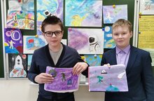 Ко Деню космонавтики советник директора по воспитанию, учитель изобразительного искусства Лазарева Л.Н. в среднем звене провела конкурс рисунков «Космическое пространство».