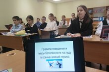 22 ноября в 7 В классе был проведён классный час по безопасности на водных объектах в осенний период. Целью классного часа: - сформировать у детей представление о правилах безопасного поведения на водоемах в осенне - зимний период; - объяснить детям, что нельзя развлекаться на тонком льду, что это смертельно опасно; - познакомить с правилами поведения на льду; - учить оказывать первую медицинскую помощь пострадавшему на воде; - воспитывать осторожность и аккуратность в поведении на водоемах в осенне-зимний период. В конце классного часа дети получили памятки для себя и родителей.