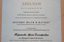 Поздравляем Торгашову Арину – лауреата заочного тура XXXII Всероссийского детского конкурса научно-исследовательских и творческих работ «Первые шаги в науке» по направлению «Экология, безопасность жизнедеятельности» и её научного руководителя, учителя химии Шакирову Сирину Музиповну. Желаем творческого вдохновения, новых открытий и побед в конкурсах республиканского и всероссийского уровня.