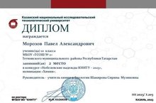 Поздравляем Морозова Павла, занявшего 2 место в республиканском конкурсе «Нобелевские надежды - 2023» в номинации «Химия» (руководитель-учитель химии и биологии Шакирова Сирина Музиповна). Желаем новых творческих побед в 2023-2024 учебном году!