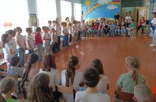 Также девчонки из отрядов «220 вольт» и «Нон стоп» вместе с ребятами пришкольного лагеря «Солнышко» станцевали флешмоб, посвящённый Дню экологии.