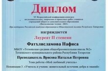 Фатхлисламова Нафиса ученица 5 Б класса (рук. Врясова Н.П.), участвовала в XV Всероссийской конференции исследовательских, творческих и проектных работ учащихся «Пасхаловские чтения». Поздравляем!