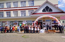 И вот кульминационный момент. Один из выпускников Семенычев Ярослав, гордость школы, держит на плече наряженную первоклассницу Нальгиеву Ясмин. Звенит последний звонок, открывая дверь не только в школу, украшенную в честь праздника, но и во взрослую жизнь.