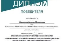 Поздравляем учителя химии Шакирову Сирину Музиповну с победой в республиканском конкурсе методических разработок «Практическая реализация ФГОС в образовательной организации: урок и непосредственная образовательная деятельность» в номинации « Естественно-математический цикл».