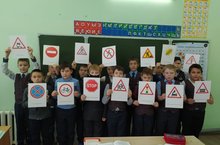 В 1А классе (классный руководитель Ильина Ю.Ф.) прошел открытый урок по безопасности дорожного движения. Дети познакомились с историей дорожного движения. Вспомнили дорожные знаки, регулирующие движение пешеходов. Нарисовали и организовали в классе выставку знаков.
