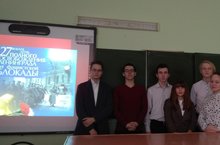 Сегодня в 9А классе (классный руководитель Вавилова В.Н.) прошла беседа, посвященная полному снятию блокады Ленинграда. Учащиеся вспомнили то, что пришлось испытать их сверстникам, оставшимся в окруженном городе: постоянные бомбежки, работу на заводе, холод и голод. Блокада Ленинграда, длившаяся 862 дня, - пример героического подвига жителей, который останется в нашей памяти…