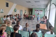 После обеда воспитанники лагеря вместе с воспитателями отправились в спортивно-оздоровительный комплекс «Барс», где их встретила начальник отдела ЗАГС Тетюшского муниципального района Дианова Лариса Михайловна. Она подробно рассказала ребятам о работе ЗАГСа, показала отдел архива и служебные помещения.