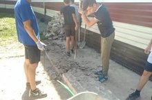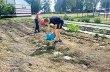Трудовая бригада успешно продолжает работу по благоустройству пришкольной территории. Ребята работают слаженно и дружно.