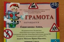 Учащиеся 2Б класса и классный руководитель Михеева И. Ю. поздравляют Ещиганову Анну, занявшую 1 место в муниципальном этапе Республиканского конкурса творческих работ «Дорога БЕЗ опасности» в номинации «Памятка по ПДД и профилактике безопасного поведения на дороге». Так держать!
