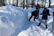 Начало весны нынче снежное. Вероятно, именно поэтому тимуровцы 6Б класса часто навещают ветерана педагогического труда Вериялову Лидию Маркеловну и помогают ей откидывать снег возле и во дворе дома.