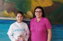 Мухтарова Г.И. янына бардылар. Кызлар чәчәкләр һәм сыйныф җитәкчесе белән бергә бәйләгән мунчала илттеләр, алар үзләренең бар эшкә дә оста булулары белән ветеран укытучыны да сөендерделәр.