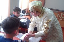 Так как мы живем в Республике Татарстан, то должны знать историю и традиции татарского народа. На уроках татарского языка все не охватишь, поэтому мы встретились с Абдурахмановой Анюзой Вильдановной, родительницей нашего 7 «Б» класса. Придя к нам в национальном костюме, она рассказала ребятам, как раньше, в старину, в деревнях, когда не было телевидения, компьютеров, телефонов, молодые девушки и парни проводили свободное время: собирались все вместе, играли, вели беседы, пели песни. В конце встречи Анюза Вильдановна провела с ребятами одну из игр того времени.