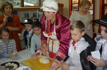 В самом конце новогодних каникул, в воскресенье, 8 января, ученики 3А класса (учитель – Королева А.А.) были приглашены в МКУ «Музей истории Тетюшского края» на традиционное рождественское торжество в доме знаменитого тетюшского купца Серебрякова. В дверях дорогих гостей встречал сам купец и угощал ребят сладкими леденцами. В уютной обстановке теплого радушия и гостеприимства ребята научились стряпать разборный пирог, попробовали вкусного взвара, в чайной комнате узнали про разные виды самоваров, попробовали ухватом достать чугунок картошки из печи. В мастерской Деда Мороза изготовили поделку, изображающую символ наступившего года. В завершение праздника угостись горячими разборными пирогами с конфетами и сладостями. Весь праздник рядом с ребятами были персонажи старины: хозяин с хозяйкой, домовой, звездочет, ряженые с вифлеемской звездой, сыростница.