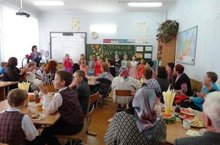 С пожеланием теплой осени обратились к своим бабушкам и дедушкам ребята 3А класса МБОУ «Тетюшская СОШ №2» (классный руководитель Королева А.А.) на празднике, организованном в честь своих самых родных и близких людей. Веселые сценки и игры, озорные песни и проникновенные стихи прозвучали в классе, который на непродолжительное время превратился в уютное кафе «Осень».
