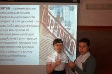 Хотя формы злоупотребления служебным положением многообразны, подробно был рассмотрен такой вид коррупции, как взятка. В ходе классного часа был организован тренинг: из учащихся класса выбрали три капитана, которые набрали себе команды. Каждой команде предложили индивидуальное задание: обыграть ситуацию, применив полученные знания по антикоррупционному поведению. Команды справились блестяще, эта часть классного часа была особенно оживлённой.