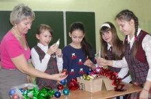 Учащиеся школы приняли активное участие в Республиканской благотворительной акции по сбору новогодних подарков для детей юго-восточных районов Донецкой и Луганской областей Украины. Ребята принесли не только елочные украшения, но и школьные принадлежности, книги, игрушки, поделки, сделанные своими руками. Более практичными оказались учащиеся 3б класса (классный руководитель Михеева И.Ю.), они принесли хозяйственные товары (шампунь, мыло, зубную пасту, щетку и др.). Учащиеся 5а класса (классный руководитель Фаткуллина Х.Г) собрали посылку из елочных игрушек и написали на посылке новогоднее поздравление. Пусть не оскудеет рука дающего!