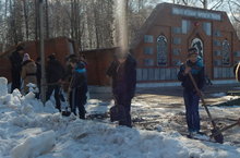 Важное дело. 20.03.2015 Учащиеся 7-х классов приняли участие в уборке снега на монументе Победы.