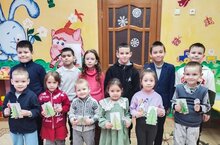 Орлята поздравляют с Новым годом. Учащиеся, 27 декабря ходили в гости в детский садик "Теремкэй". Орлята 2 класса подарили малышам новогоднюю открытку и провели акцию "Капелька счастья".