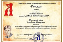 Учащиеся школы Шайдуллов Ильяс и Минкин Ильяс участвовали во Всероссийской викторине "Последний поэт деревни", посвященной 120-летию со дня рождения поэта Сергея Есенина