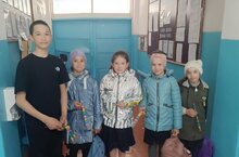 Так, например 17 ого апреля учащиеся 7 класса встретили ребят акцией "Дарю тебе радость", подарив радужные ленточки и пожелав хорошего настроения на весь день.