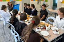 В рамках знакомства ученицы нашей школы провели мастер-классы по изготовлению татарского нагрудного украшения, а также по технике рисования на воде «Эбру». Тем самым наши гости смогли увидеть весь творческий потенциал как учеников, так и учителей.